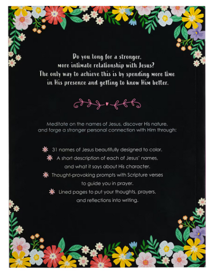 The Names of Jesus Prompted Coloring Prayer Journalis a guided coloring prayer journal that will inspire you to meditate on the names of Jesus and forge a stronger personal connection with Him.