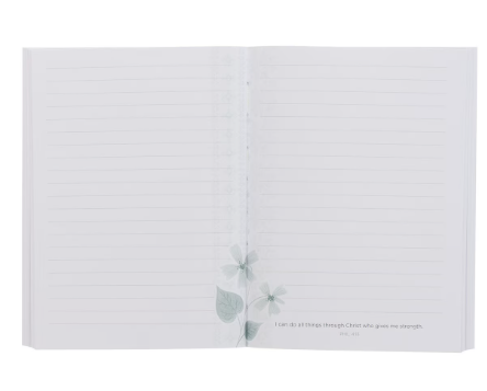 The Through Christ Green Floral Medium Notebook - Philippians 4:13 "A través de Cristo"