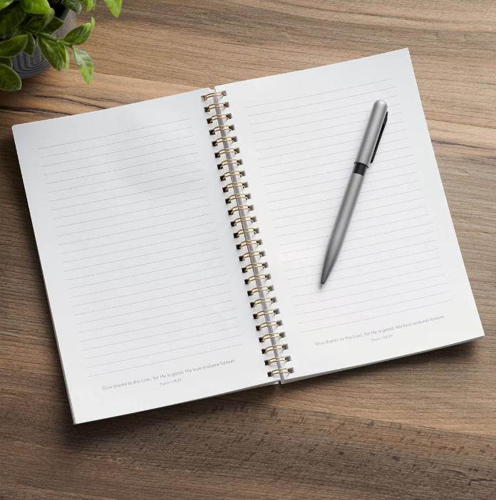Su delicado diseño floral en tonos coral y rosa, con detalles en ciruela que enmarcan la frase central, transmite belleza y serenidad, convirtiéndolo en un regalo significativo para quien necesita aliento. Más allá de su aspecto, ofrece un refugio para anotar oraciones, pensamientos y promesas, y para recordar que la fe se nutre en lo cotidiano.